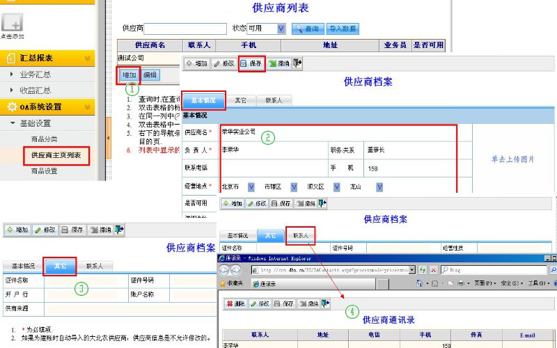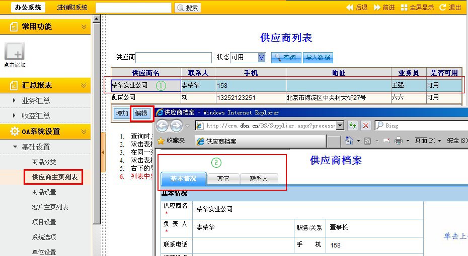 在办公系统下,点击“OA系统设置”--“基础设置”--“供应商主页列表”菜单,进入供应商列表界面,可以进行增加、编辑、查询和Excel导入。具体操作说明事项如下: |
