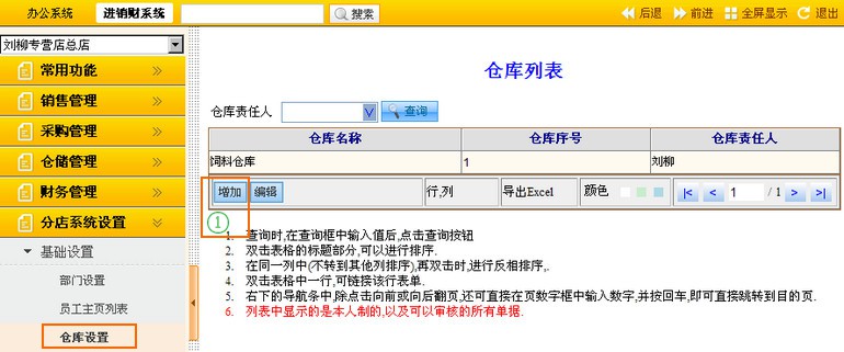 在进销财系统下,点击“分店系统设置”--“基础设置”--“仓库设置”菜单,进入仓库列表界面,可以进行增加、编辑和查询。具体操作说明事项如下: |