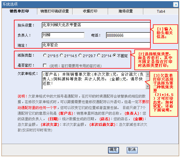 ② 销售单打印高级设置:打开图示帮助 视频演示