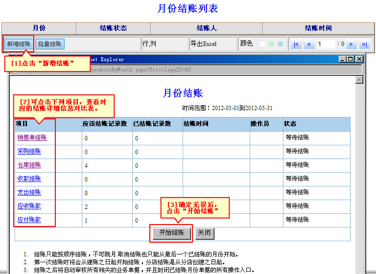结账管理包括单月新增结账和批量结账: 视频演示
