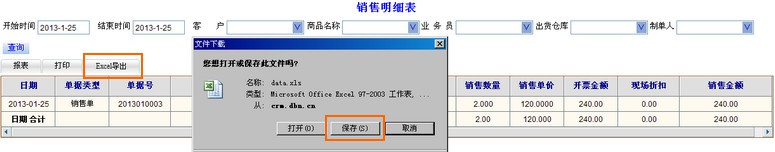 您可以在列表上的点击“Excel导出”,弹出是否保存Excel页面,点击“保存”按钮。打开图示帮助