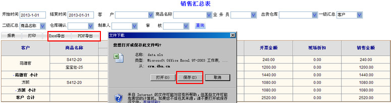 查询销售汇总表 · 打印销售汇总表 · Excel和PDF导出