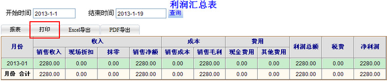 2 打印利润汇总表:
